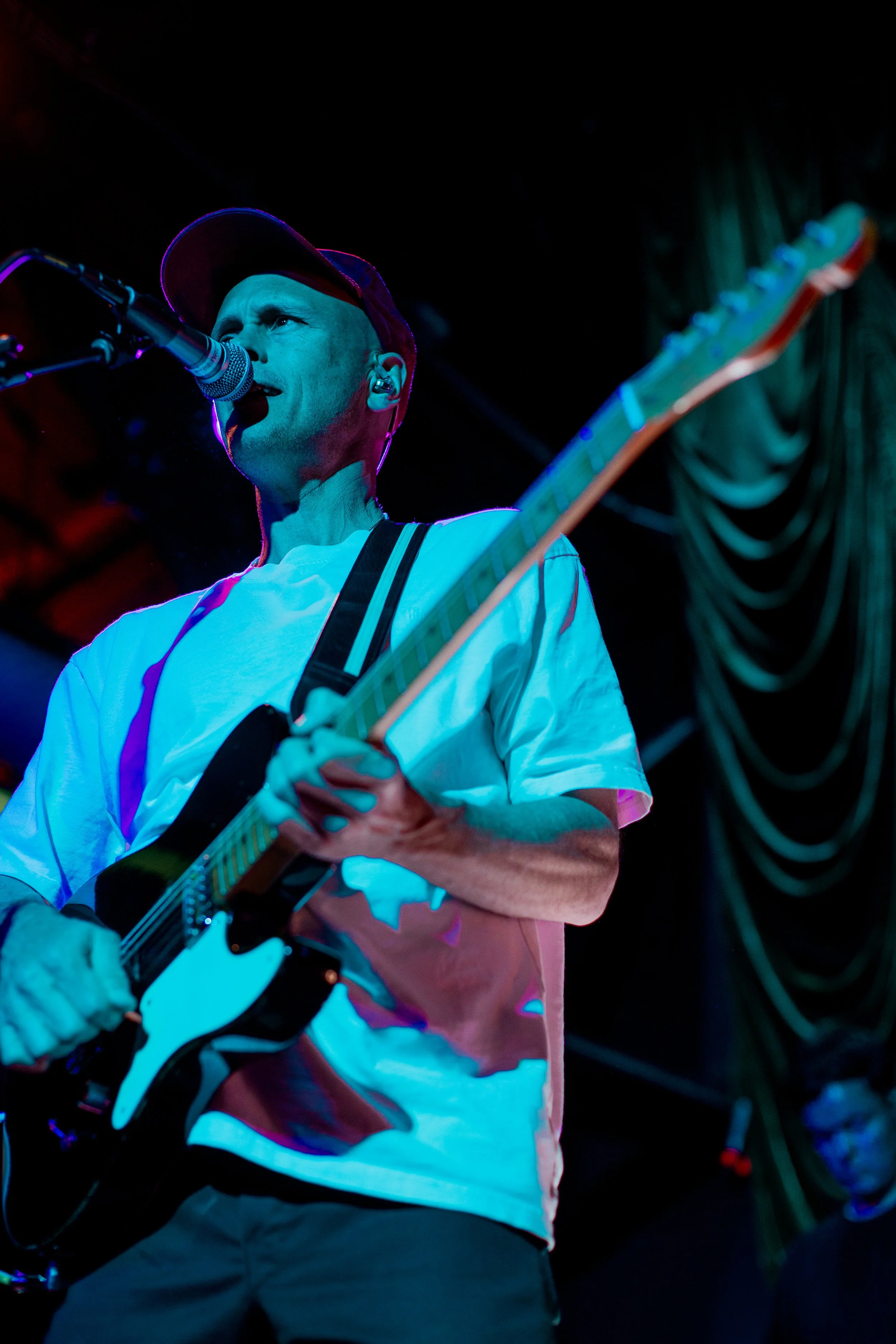 Robert Delong took over the second half of the show with his 3 epic stations of sound making. The center of his stage walined with a massive toy box of wands and buttons that brought the specialty Robert Delong sound to the set. His vocals were on point and created an atmosphere everyone was thrilled to be in. Delong’s electric energy was only heightened by the light show that accompanied him on stage. At many points throughout the night, Delong went up to these light beams and played them as though it were an extra instrument, it was awesome! And such a fun way to add an extra level of showmanship to the show. Alongside his trusty soundboard, he also had a stand alone drum kit and a instrument fueled corner that had a drum and and bass propped up for use. Delong played tunes from his most recent release “PLAYLIST of DOOM” and also played some of his classic tunes like Global Concepts. His set overall was unique to any performance I have ever seen and I am better for seeing it.