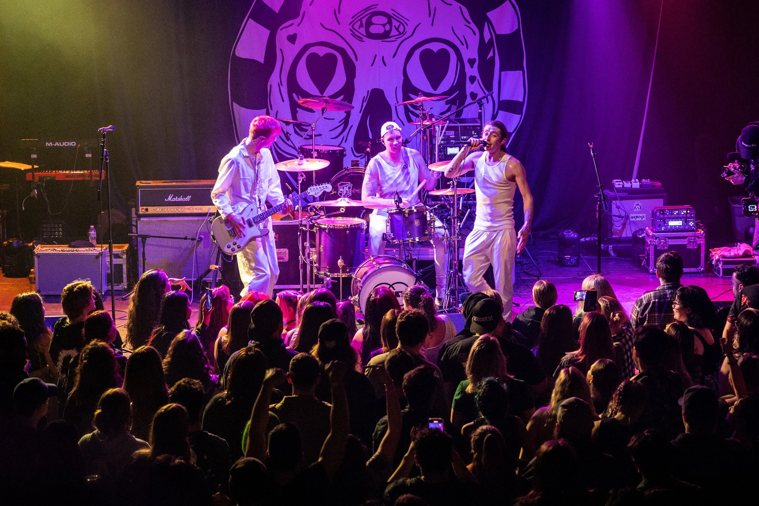 Poptropicaslutz! is a pop-punk band from New York with a twist. Christian Cicilia and Nick Crawford were seniors in high school getting ready to attend college when the pandemic hit. That’s when they decided to form their band, and I’m sure they are glad they did! They are living the dream, signed by Epitaph Records with over 250,000 monthly listeners. Their most recent single is Sierro Echo X-Ray which came out in the middle of January, accompanied by a music video. Last month, they also released an EP with some alternative versions of their song bittersweet teeth. During their set, they talked about how their song "something about the sky" came from a time when it was raining and they almost got in an accident. The last song they played was their most popular, which was "Hollywood High 16." They told the crowd they wanted them to sing it loudly with them. You can find the rest of their set from the show here.